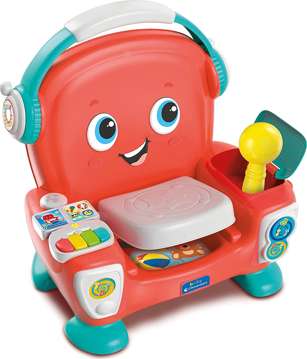 Zábavná interaktivní hračka seznámí dítě se světem hudby, rozvine jeho jemnou motoriku, koordinaci rukou a oka a smysl pro rytmus. Křesílko Clementoni hraje melodii a je plné různých hudebních nástrojů. Interaktivní křesílko hraje a povzbuzuje dítě k tanci, zpěvu i základům hry na klavír...