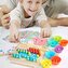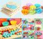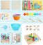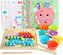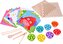 Sada se skládá z barevných dřevěných korálků, které se umísťují na dřevěné panely pomocí lžíce, kleští nebo hůlek. Balení obsahuje: - 77 barevných kuliček (v 7 barvách) - 7 barevných misek na kuličky - dřevěný panel sestávající se z 2 částí - 10 šablon: krab, chobotnice, žralok, ráje, velryba,...
