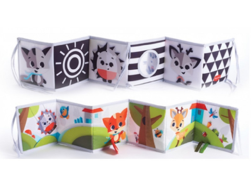 Oboustranná textilní knížka pro nejmenší je určena do kočárku, postýlky i na hrací deku. Stimuluje zrak dítěte a podněcuje jej k hraní na bříšku.Knížka nabízí dvě strany pro dvě vývojová stádia dítěte:0-3 měsíce:Strana vysoce kontrastními obrázky v základních barvách, které podněcují rozvoj...