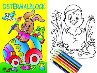 Ostermalblock gelb + 6 Buntstiften (niemiecki)