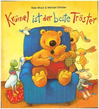 Krümel hat heute viel zu tun, seine Freunde brauchen dringend Trost: Der Hund hat Schimpfe bekommen und ist deswegen traurig, der Elch hat sein neues Halstuch verloren und das schwarze Schaf wird immer von den anderen Schafen ausgelacht. Wie gut, dass Krümel seinen Tröst-Koffer dabei hat und für jeden den richtigen Trost findet. Und am Ende benötigt dann noch jemand ein ganz besonderes Trostpflaster ...