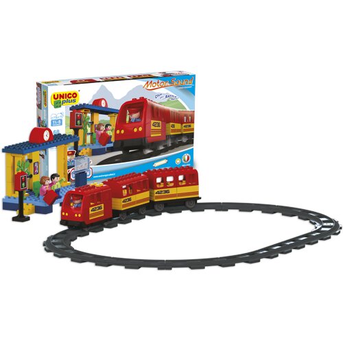Postavte si barevný vláček se zvukem na bateriový pohon. Vláček jezdí po kolejovém oválu o rozměrech 83 x 58 cm. Baterie nejsou součástí výrobku. Součástí ceny je recyklační příspěvek 8,00 Kč bez DPH.Obsah balení:1 lokomotivu2 osobní vagonybudova nádraží3 postavičkykolejnicový ovál o rozměrech 83...