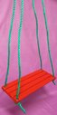 Drewniana, kolorowa huśtawka do zawieszenia. Na końcach lin znajdują się metalowe kółka do zawieszenia.Udźwig 60 kg.Materiał: drewno, polipropylen, metal. Wymiary - 40x15 cm. przeczytaj całość