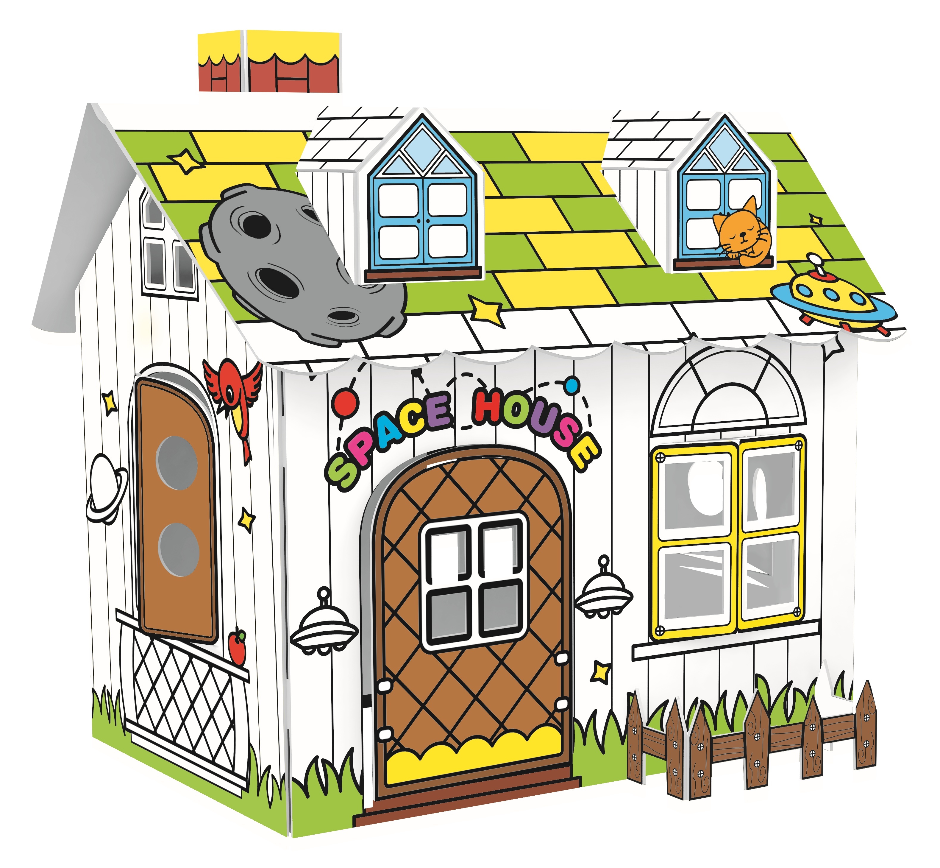 Poskládej si svůj vlastní papírový domeček! Vymaluj ho podle vlastní fanatzie! Paráda! Při výrobě domečku si budeš rozvíjet kreativitu i zručnost!součástí je 10 fixekgramáž papíru 350 gRozměry: 62 x 52 x 60 cmDoporučený věk: od 5 let przeczytaj całość