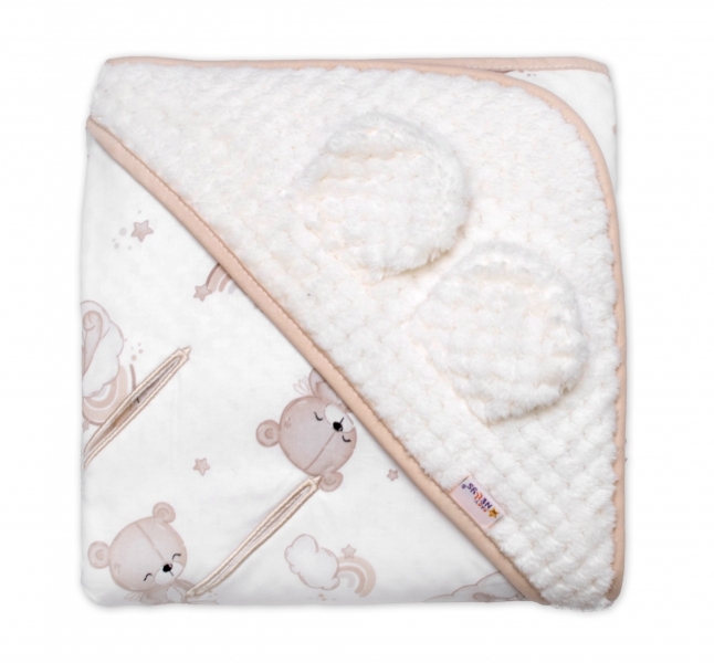 Zavinovací deka s kapucí a oušky, Malý medvídek, bavlna/luna, smetanová