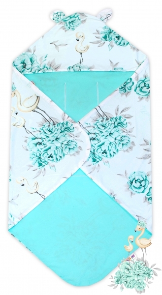 Bavlněná zavinovací deka s kapucí Baby Nellys, Plameňák - mátový