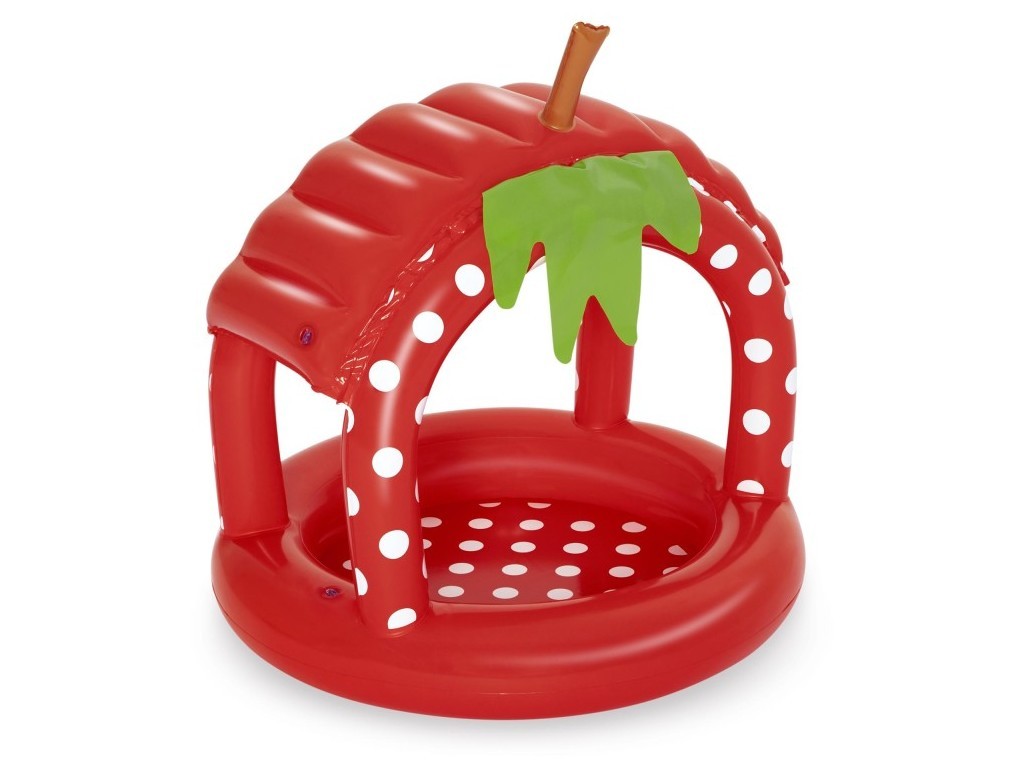 Baseny dla dzieci Bestway pozwalają dzieciom ochłodzić się w basenie bezpośrednio w Twoim ogrodzie. Zgodnie z najnowszymi trendami te dmuchane baseny są bardzo zabawne i oferują dzieciom godziny niekończącej się letniej zabawy. Dmuchane baseny dla dzieci łatwo i szybko się nadmuchują, opróżniają i przechowują. Są dobrym wyborem dla rodzin z dziećmi i świetnym sposobem, aby zapoznać małe dzieci z wodą. Dmuchany dziecięcy basen Bestway Very Berry to uroczy mały basen o wymiarach 91 x 91 x 91 cm. Zawiera wbudowany daszek UV Careful, który chroni dzieci przed bezpośrednim nasłonecznieniem. Zapewnia dzieciom bezpieczną zabawę na słońcu i chroni je przed szkodliwym promieniowaniem UV. Rozmiar: 91 x 91 x 91 cm. Idealny dla dzieci od 2 lat. Urocza i zabawna grafika z motywem truskawki. Daszek przeciwsłoneczny UV Careful. Zawartość: 1 basen dla dzieci, 1 łatka naprawcza