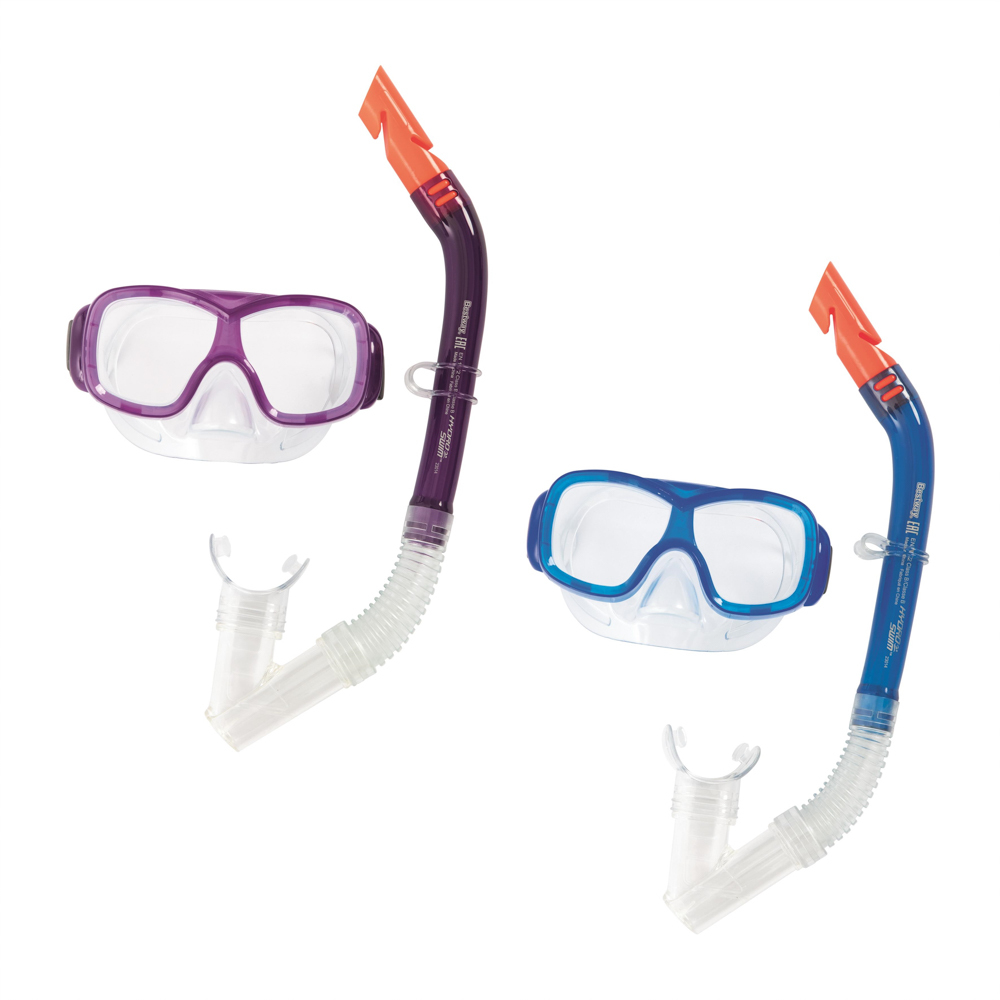 Šnorchlovací set PIKE obsahuje brýle a šnorchl. Polykarbonátové čočky ve tvaru leteckých brýlí s UV ochrannou vrstvou. Dvojitý lem pro přesné přitisknutí a zabránění průsaku. Plně nastavitelný dělený silikonový pásek. Technologie šnorchlu se suchým povrchem brání téměř jakémukoliv vniknutí vody. Měkký, pohodlně přiléhající náustek. Na výběr z modré a fialové barvy. Obsahuje: 1 brýle, 1 šnorchl. Věk: 7+