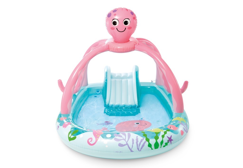 Hrací centrum o velikosti 234×183×150cm. Zabudovaná sprška s připojením na zahradní hadici. Součástí balení jsou dva nafukovací kroužky a opravná záplata. Extra nafukovací podlážka pro větší pohodlí. Maximální nosnost je 54 kg. Objem je maximálně 229 l. przeczytaj całość