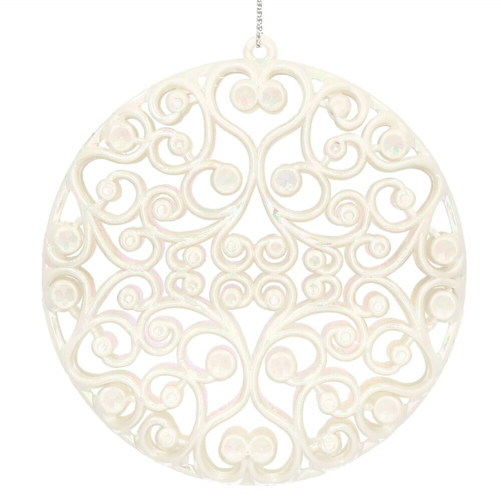 Koule s ornamenty 9cm bílá perleť, vánoční ozdoba