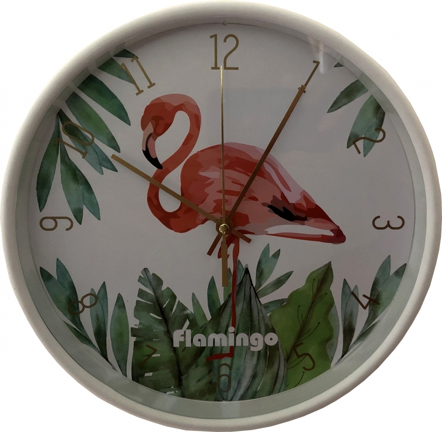 DUE ESSE, Nástěnné hodiny Plameňák, průměr 25 cm, bílé