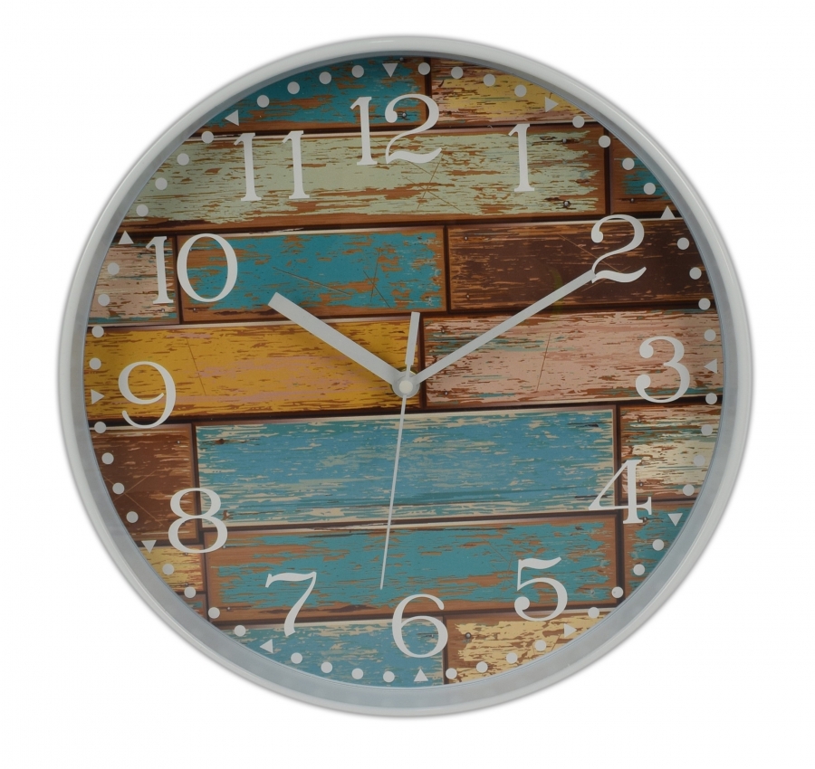 DUE ESSE, Nástěnné hodiny cihly efekt dřevo oprýskaný modrý lak, průměr 30 cmNástěnné hodiny s efektem cihel a dřeva jsou vhodné jak do moderních prostorů tak i pro dobové interiéry. Hodiny jsou vyrobené z plastu s číselníkem chráněným sklem. Hodinový strojek QUARTZ je napájený baterií 1 x AA... przeczytaj całość