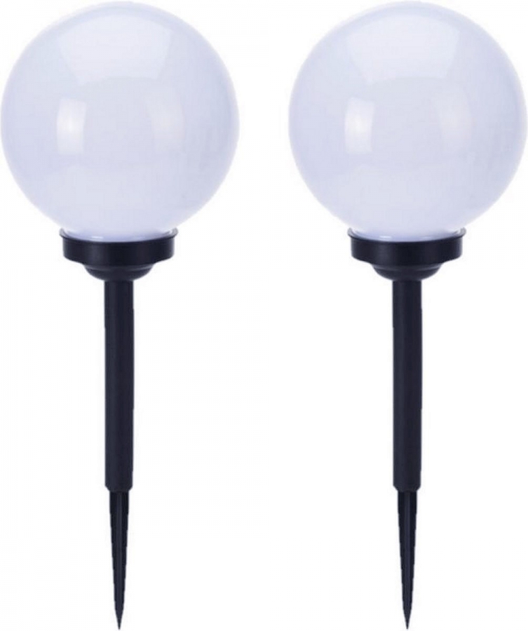 Zestaw 2 szt. solarnych lamp LED z świecącą kulą oświetli ogród, werandę, ścieżki, altanę itp. Przeznaczony do wbijania w ziemię lub do donic.