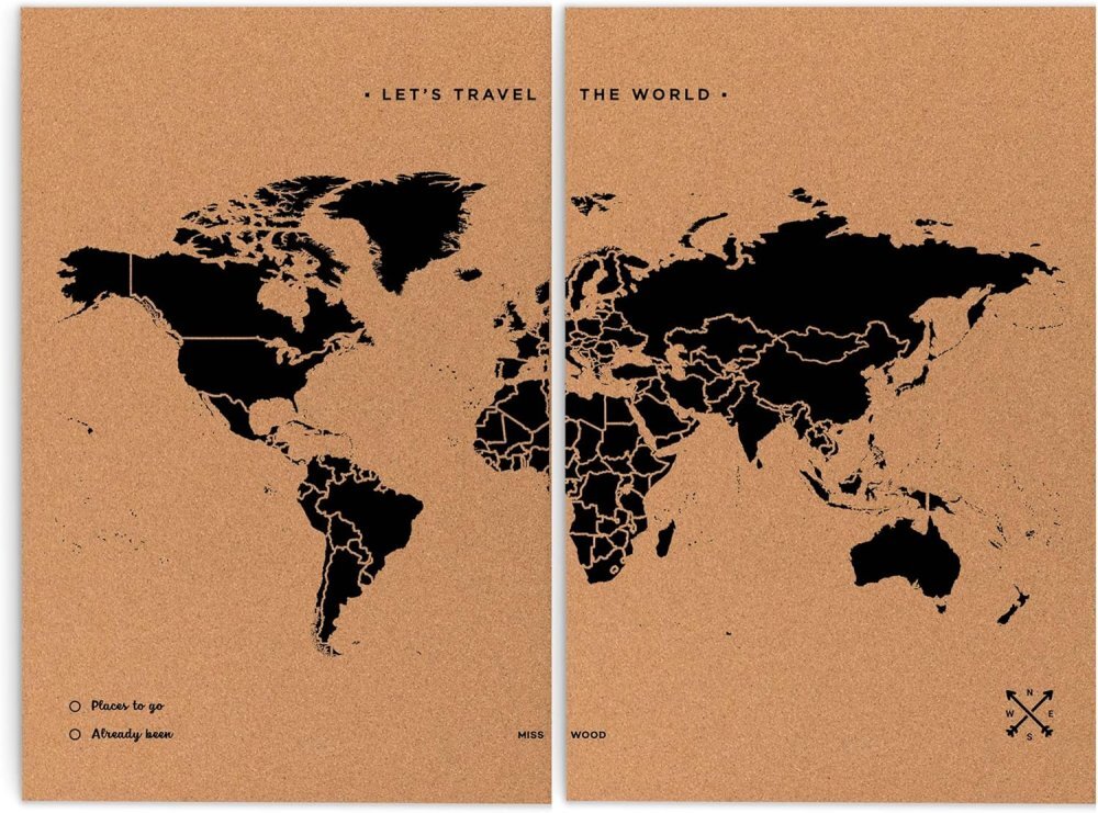 Korková nástěnná mapa světa- přírodní, černá XXL