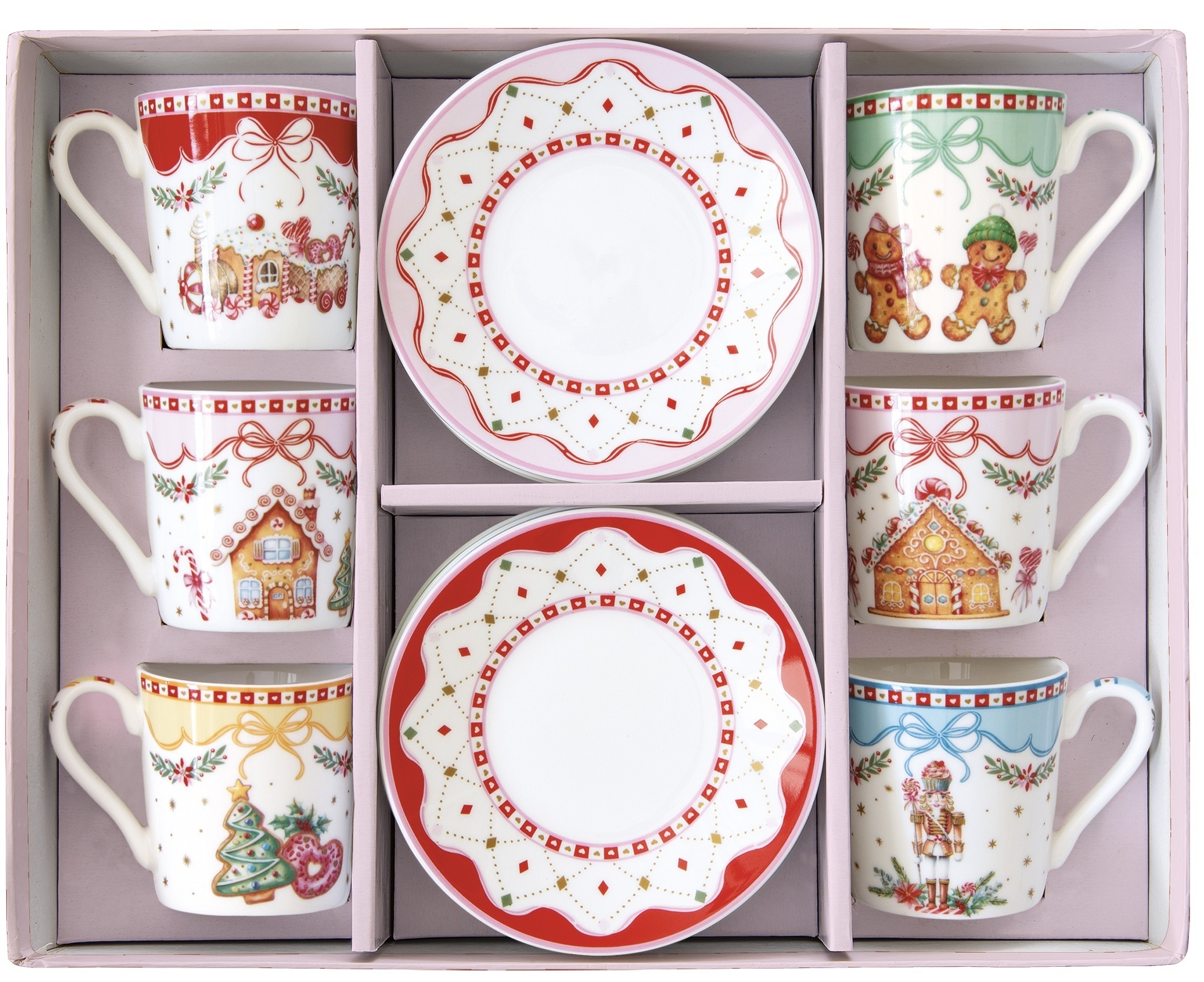 Porcelánové šálky a podšálky na kávu Sweet Christmas
