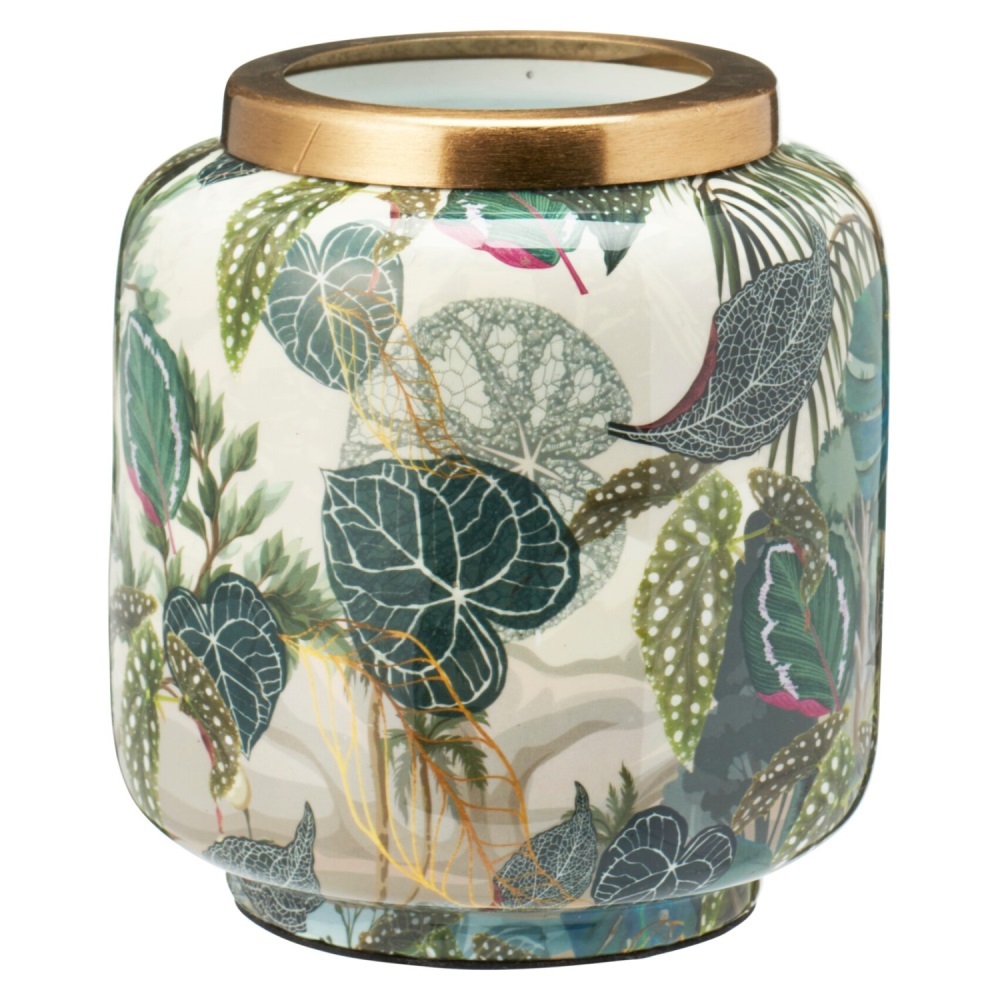 Váza 155 mm s potiskem zelených listů džungle a zlatým lemováním