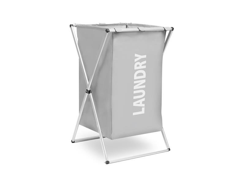 Moderně vypadající koš na prádlo vyrobený z tkáně. Díky masivní kovové konstrukci a velkému obsahu je vhodný k uložení více kilogramů oblečení nebo ložního prádla. Podkládání jednou rukou a nosná poutka zajišťují snadnou přenosnost.
