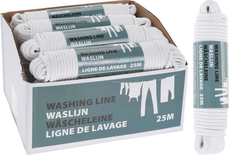 CLOTHES LINE ROPE 25 METER DIA 5,5MM IN WHITE COLOUR, PE MATERIAL, EACH WITH COLOUR SLEEVE, 12PCS IN DISPLAY/ 225X70X50MM, Sleeve / CFT 1,71,(69.201/40ft HQ) przeczytaj całość