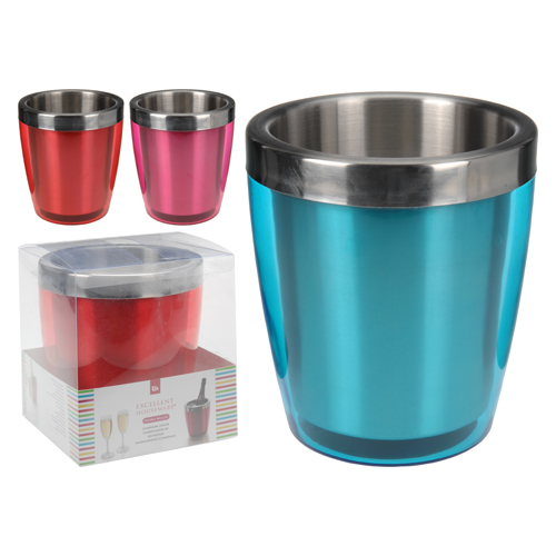 Chladiaci nádoba na sekt, s dvojitým plášťom, udrží Váš nápoj príjemne vychladený po dobu niekoľkých hodín. Vonkajší plášť v troch farebných prevedeniach - tyrkysová, ružová, červená. przeczytaj całość