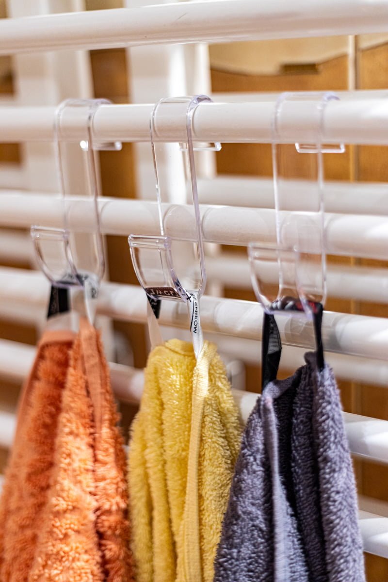 Wieszak łazienkowy na element grzewczy to praktyczna pomoc do zawieszenia ręcznika, szlafroka itp. na grzejniku drabinkowym. Cena za zestaw 4 szt. Wysokość 10 cm, całkowita głębokość 3 cm, średnica uchwytu na element 25 mm, szerokość 2,5 cm. Kolor przezroczysty. EAN 8696287007713 przeczytaj całość