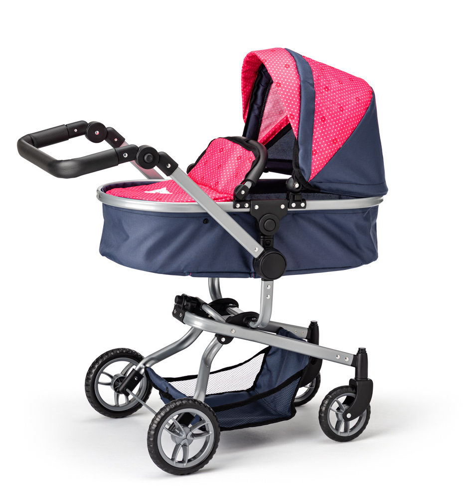 Kočárek pro panenky značky Woody má velmi lehkou konstrukci a přední kolečka s rotací 360 stupňů, což umožňuje jeho snadné ovládání. Má rovněž nastavitelnou výšku rukojeti, takže se přizpůsobí výšce dítěte. Velmi jednoduchým způsobem můžete přestavět tento klasický hluboký kočárek na sportovní...