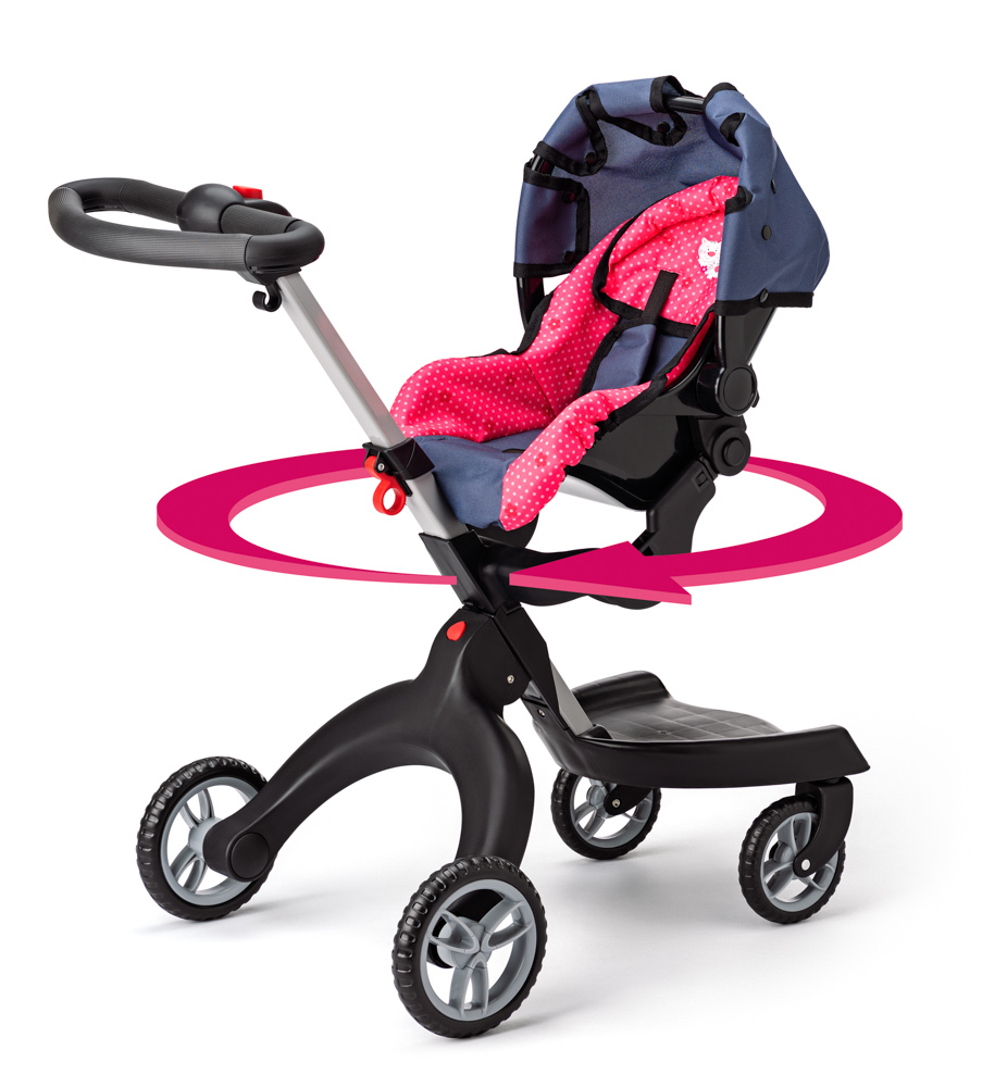 autosedačka pro transport panenky. Design kočárku pochází z dílny českých návrhářů.