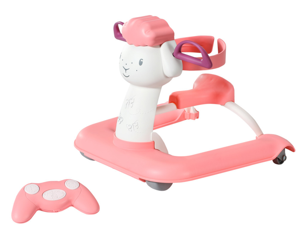 Ovečka vpřed! S chodítkem na dálkové ovládání se může BabyAnnabell pohybovat po místnosti a zkoušet první krůčky. Chodítkov ovečkovém designu se pohybuje dopředu a dozadu, doleva a doprava. Přednístranu chodítka zdobí hlava roztomilé ovečky s růžovými vlásky. Podobličejíkem ovečky je chodítko...