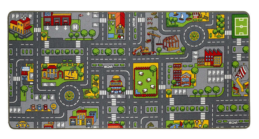 Oboustranný koberec 2v1 na jedné straně mapa města, na druh straně farma s přírodou. Velikost koberce 80×120 cm. Kvalitní materiál, vyrobeno v Belgii. przeczytaj całość