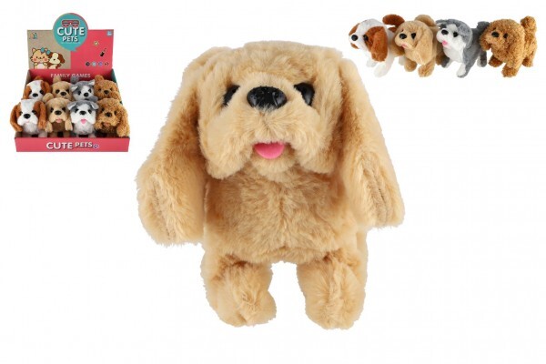 Pes chodící štěkající plyš/plast 18cm na baterie 4 druhy 8ks v boxu
