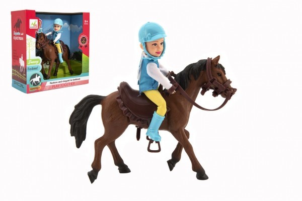 Kůň + panenka/panáček žokej plast 20cm v krabici 23x23x9,5cm
