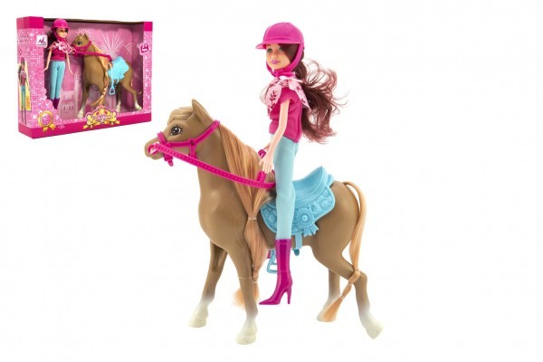 Kůň + panenka žokejka plast 23cm v krabici 35x26x8cm