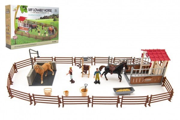 Zestaw dla wszystkich miłośników koni. Zbuduj własne stanowisko ze stajnią i ogrodzeniem oraz wieloma akcesoriami potrzebnymi do pielęgnacji konia. Koniki możesz osiodłać, umyć, wyczyścić i nakarmić. Stwórz realistyczną farmę koni. Wszystko wykonane z wysokiej jakości i trwałego plastiku. Wymiary opakowania 39 x 27 x 8,5 cm. Odpowiednie dla dzieci od 3 lat.