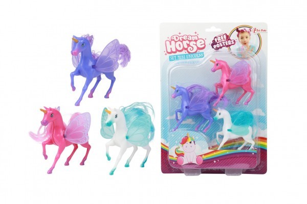Jednorožec s křídly 3ks plast 10cm na kartě