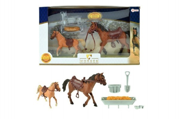 Koně 2 ks s doplňky plast v krabici 40x24x6cm