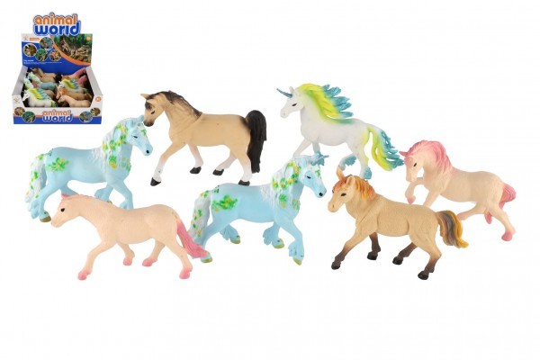 Kůň/jednorožec plast 15cm mix barev 12ks v boxu