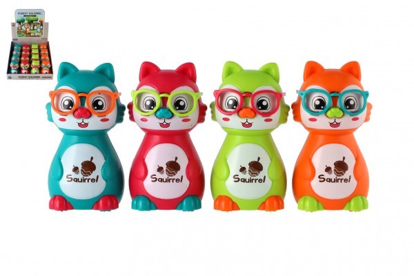Veverka plast 10cm na setrvačník stlač hlavu a jeď 4 barvy 16ks v boxu