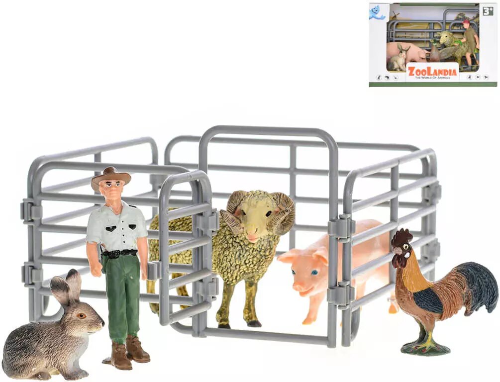 Zoolandia farma herní set zvířátka 4ks s farmářem a ohradou plast 2 druhy