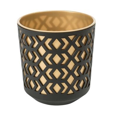 Nowoczesna plastikowa doniczka AZTEK składa się z dwóch części w pięknych kontrastowych kolorach: perforowana doniczka - osłonka (matowa) oraz pełna doniczka (błyszcząca) - wkład. Doniczka (wkład) ma kolor złoty, osłonka (perforowana doniczka) jest w kolorze czarnym (kremowo/biała). Kolory są odporne na promieniowanie UV. Doniczka nadaje się zarówno do wnętrz, jak i na zewnątrz. Do tych doniczek można dokupić automatyczny system nawadniania (art. 683). Wymiary - Ø 255 mm, wysokość - 270 mm