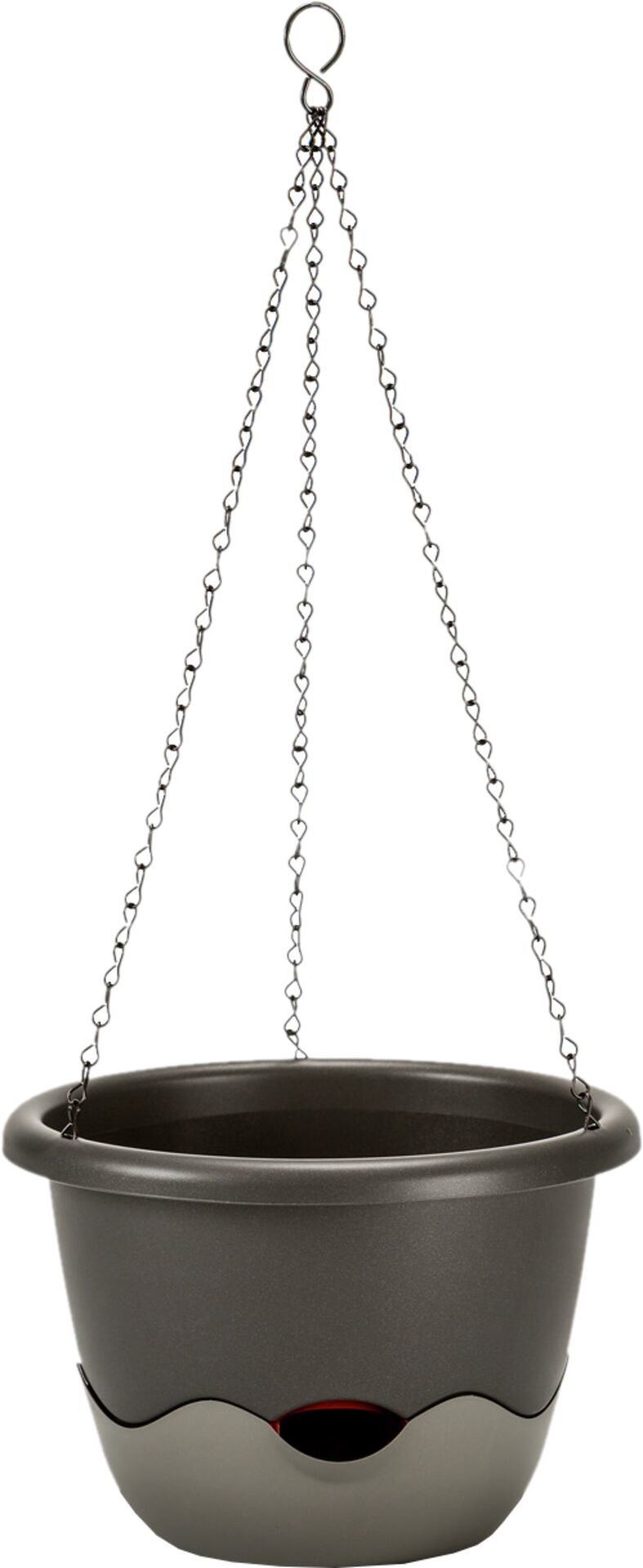 Plastikowy materiał gwarantuje lekkość i trwałość donicy, którą można łatwo zawiesić za pomocą dołączonego łańcuszka. Połączenie ciemnego i jasnego odcienia antracytu nadaje donicy nowoczesny i elegancki wygląd, pasujący do różnych stylów wnętrz i przestrzeni zewnętrznych.