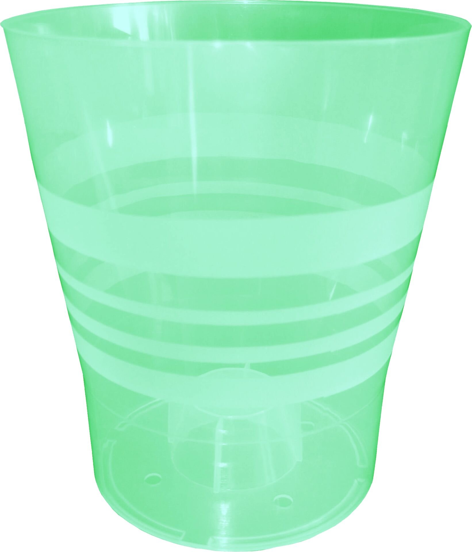 Plastikowa doniczka dla storczyków. Podwyższone dno zapobiega przelaniu i nadmiarowi wody, co jest najczęstszą przyczyną ich więdnięcia. Można ją również użyć jako osłonkę, otwory odpływowe są jedynie zaznaczone.