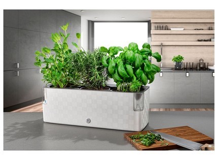 Inteligentna doniczka na zioła z systemem Aqua, zapewnia długie życie Twoim roślinom, pasuje do jednej typowej szkółkarskiej doniczki (górna średnica 10-12 cm) - bez montażu. przeczytaj całość