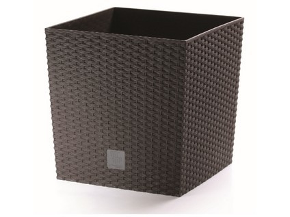Plastikowa doniczka RATO LOW, która wiernie imituje rattanowy splot, nadaje się do wnętrz, na tarasy i balkony.