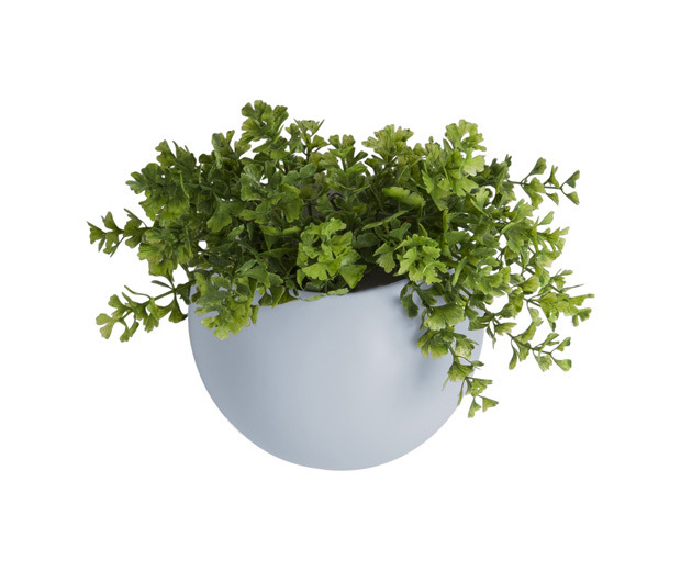 Nástěnný matný světle modrý keramický květináč.