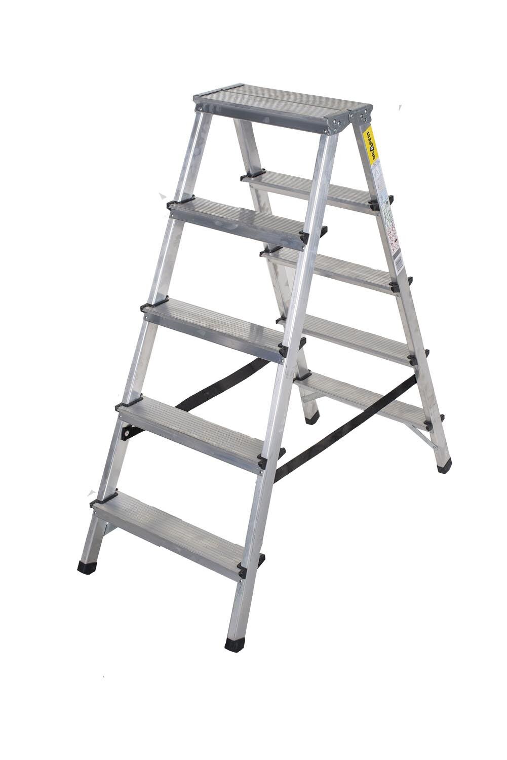 Typ - 2x5 oboustrannéVýška schůdků: 1,13 mPracovní výška: 3,03 mVýška podesty: 1,03 mŠířka: 0,46 mMax.nosnost: 150 kgMateriál: hliník/plastHmotnost: 3,4 kg przeczytaj całość