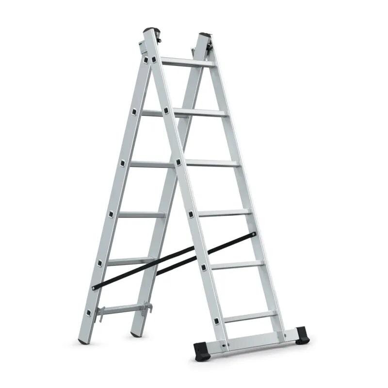 Typ - 2x6 dwuczęściowyWysokość drabiny: 2,7 mWysokość robocza: 3,7 mSzerokość: 0,70 m (u podstawy)Maks. udźwig: 150 kgMateriał: aluminium/plastWaga: 5,5 kg przeczytaj całość