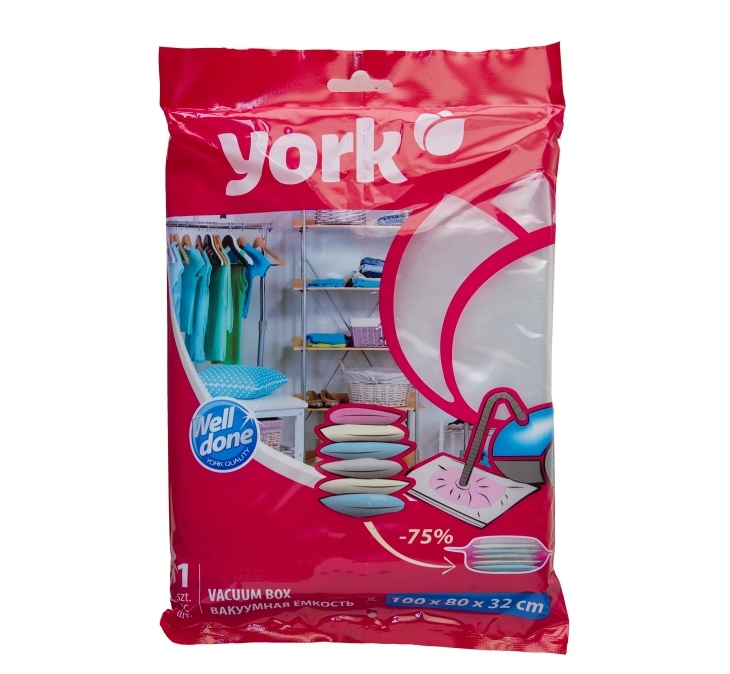 Odkryj tajemnicę uporządkowanego i przestronnego domu z workiem próżniowym YORK! Zaoszczędź miejsce w szafach, na strychu czy w bagażniku samochodu dzięki efektywnemu pakowaniu ubrań, kołder i koców.