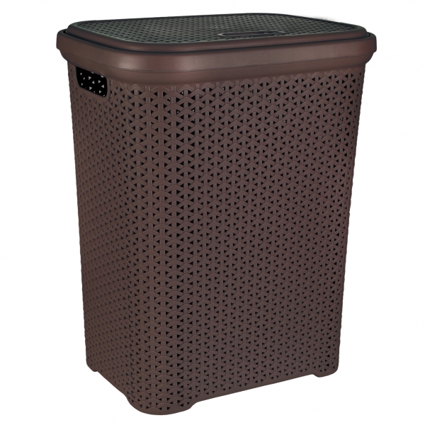 Koš na prádlo s odklápěcím víkem. Materiál: plast. Dekor ratanu. Rozměry: 44x33x56 cm. przeczytaj całość