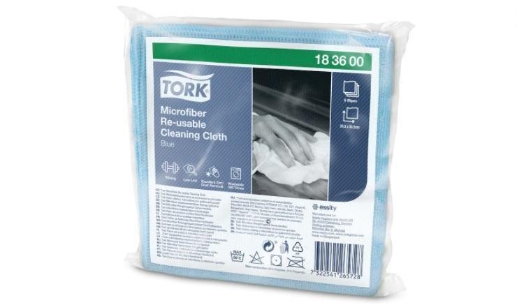 Utěrka Tork čisticí z mikrovlákna pro opakovatelné použití, 30,5 x 30,5 x, modrá - 6 ks