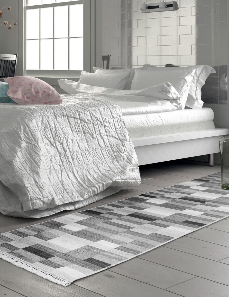 Kvalitní univerzální kusový běhoun, ideální do předsíně, kuchyně nebo obývacího pokoje. Je nabízen v trendovém vzoru v rozměru 80x300 cm. Běhoun má ze spodní strany protiskluzovou latexovou úpravu. przeczytaj całość