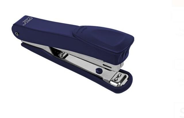 Niewielki, metalowy zszywacz.Głębokość wsuwania kartek: 60 mm.Ilość jednorazowo zszywanych kartek: 12.Rodzaj zszywki: No.10.Kolor: niebieski.Posiada miejsce na karteczkę do podpisu. przeczytaj całość